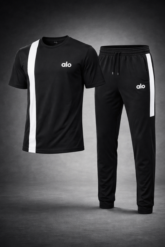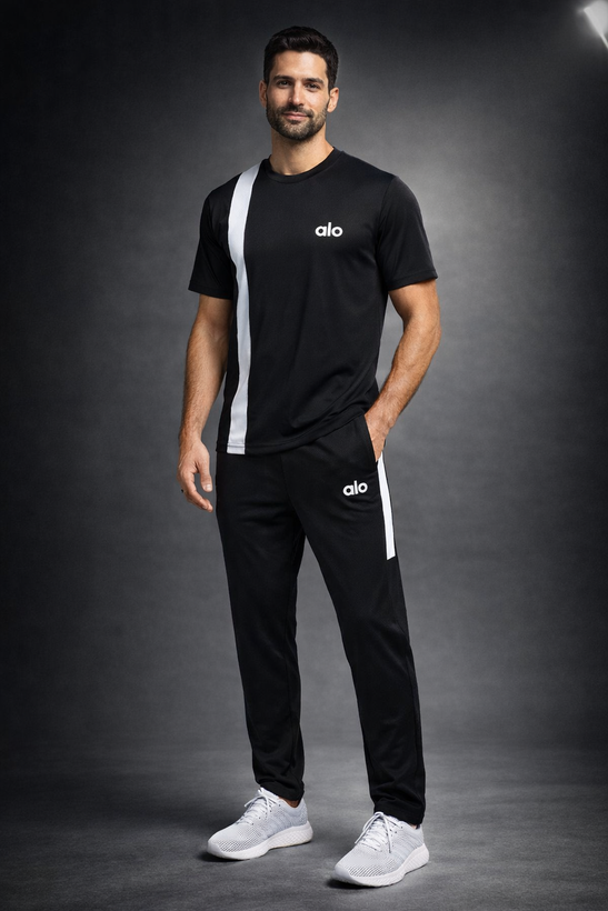 ست تیشرت و شلوار مردانه مدل Asics مشکی سفید | ست اسپرت بهاره با پارچه نرم و تنخور عالی