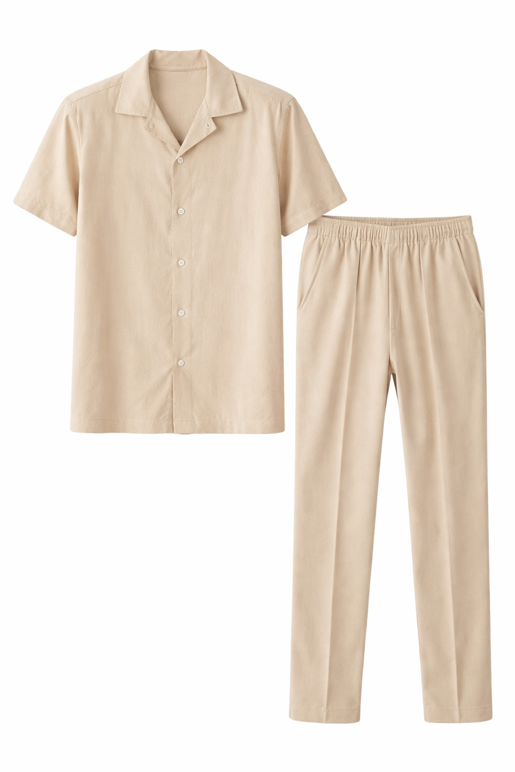 این ست مردانه با الهام از استایل مراکشی، ترکیبی از سادگی، اصالت و طراحی مدرن است. رنگ کرم گرم آن بهراحتی با انواع کفش و اکسسوری ست میشود و ظاهری شیک و مرتب ایجاد میکند. پیراهن آستین کوتاه دکمهدار با یقه برگردان کلاسیک در کنار شلوار راحت با کمر کشی، استایلی هماهنگ و خوشفرم ساخته که هم برای استفاده روزمره مناسب است و هم برای دورهمیها و مهمانیهای نیمهرسمی. این ست انتخابی کاربردی برای آقایانی است که به ظاهر آراسته و در عین حال راحتی اهمیت میدهند.