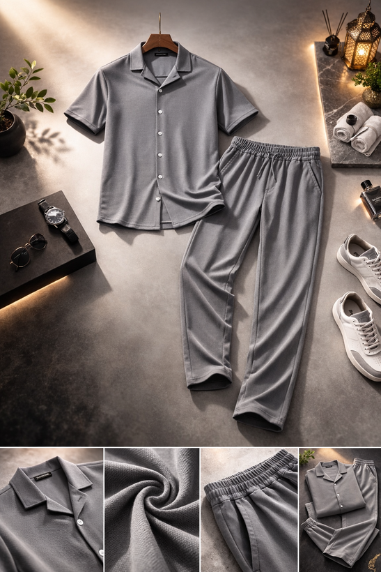 ست لباس راحتی مردانه مراکشی طوسی، ترکیبی از سادگی، شیکپوشی و راحتی واقعی است. طراحی مینیمال با یقه دکمهدار و شلوار اسلش فیت آزاد، این ست را به انتخابی عالی برای استفاده روزمره، خانه، مهمانیهای خودمانی و حتی استایل بیرونی تبدیل کرده است.