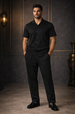 ست مردانه مراکشی سایز xl | پیراهن آستین کوتاه و شلوار خنک رنگ مشکی