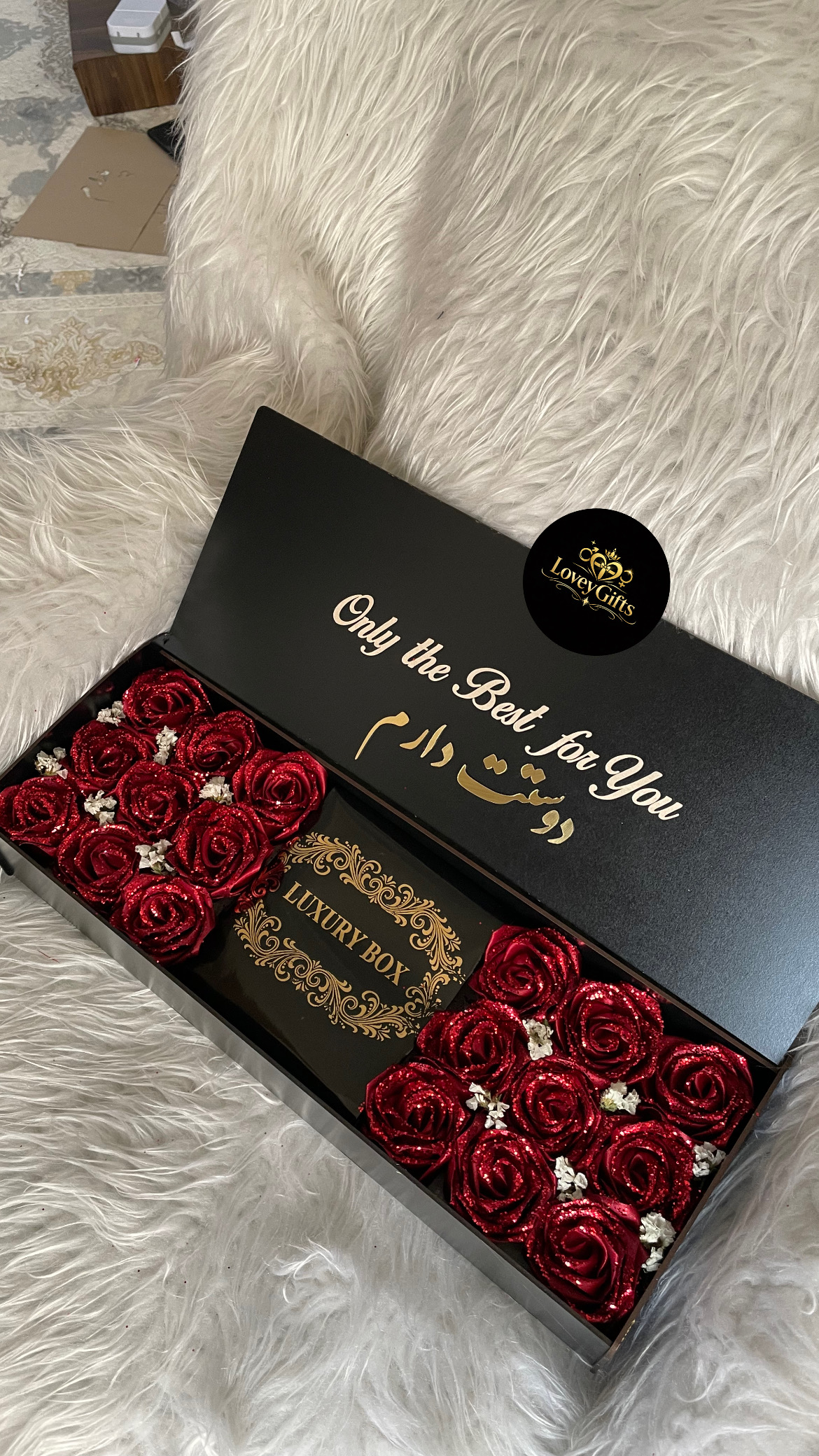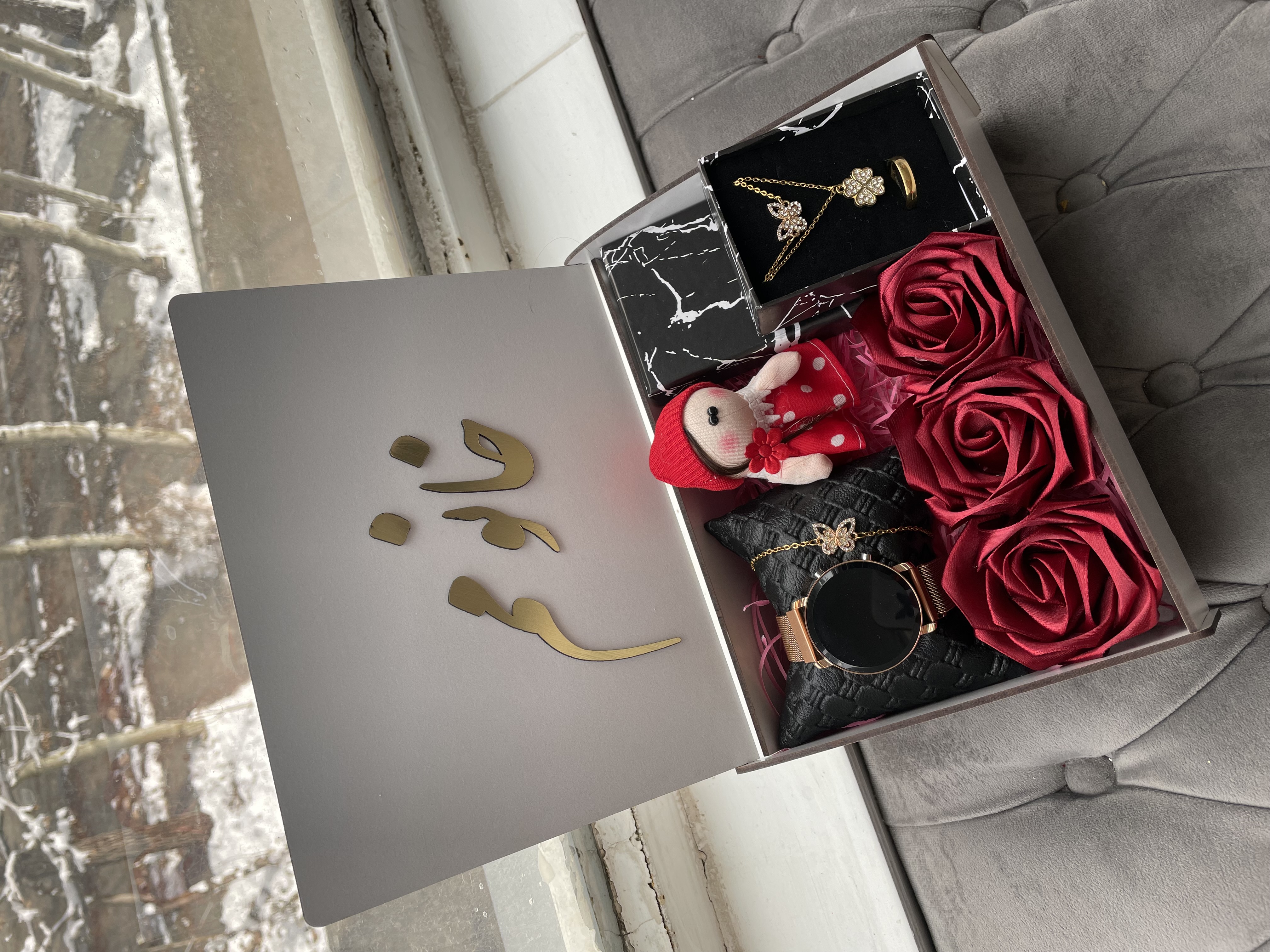 باکس هدیه لاکچری مدل بیتا –ولنتاین|سرویس تیتانیوم، آبکاری با کیفیت ، ضدحساسیت با باکس گل ۱۸ عددی ربانی + ارسال رایگان کپی