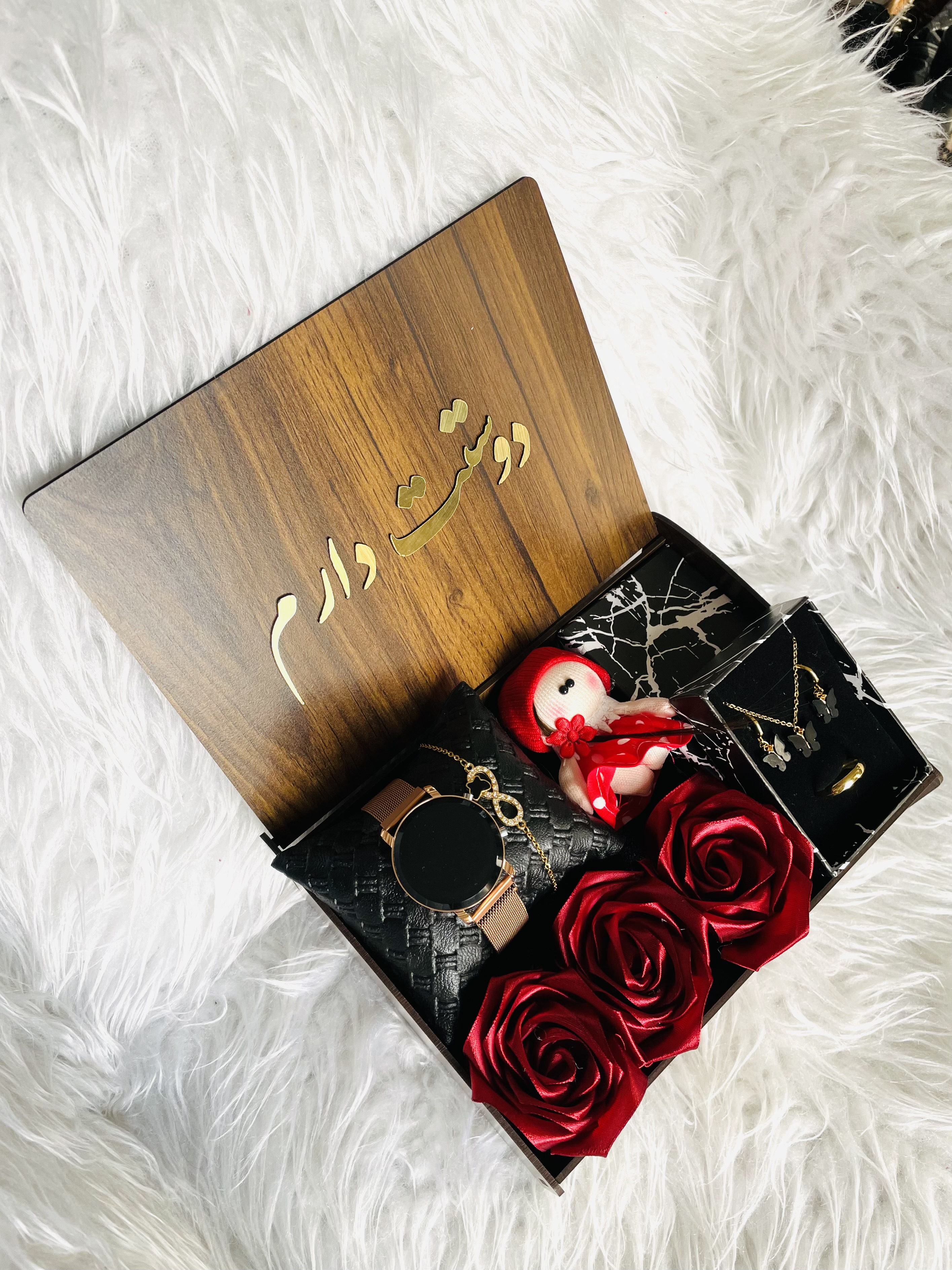 (ارسال رایگان)باکس هدیه زنانه چوبی شیک – پک کادویی زنانه اسپرت و مجلسی مناسب روز زن ۸۹