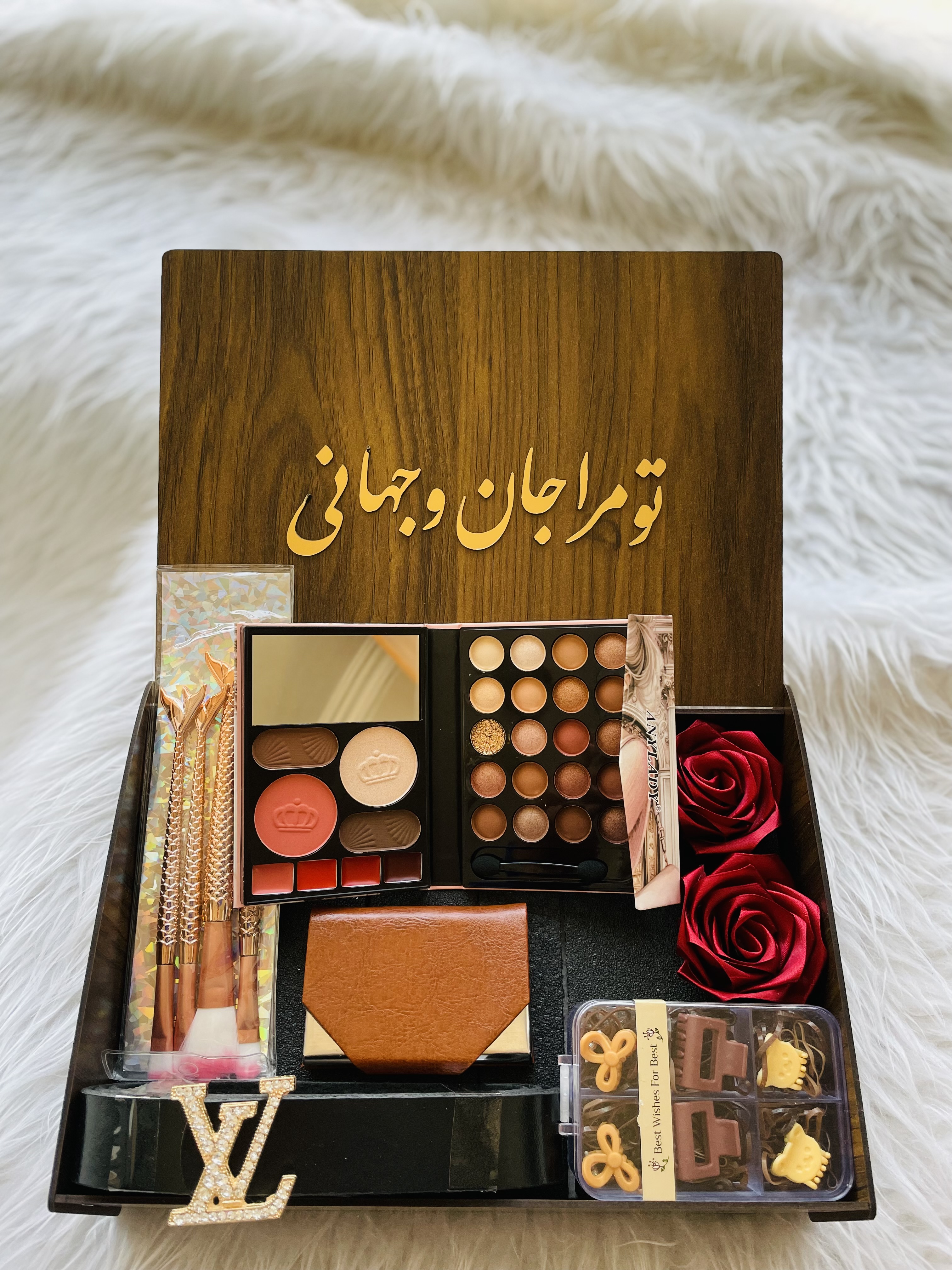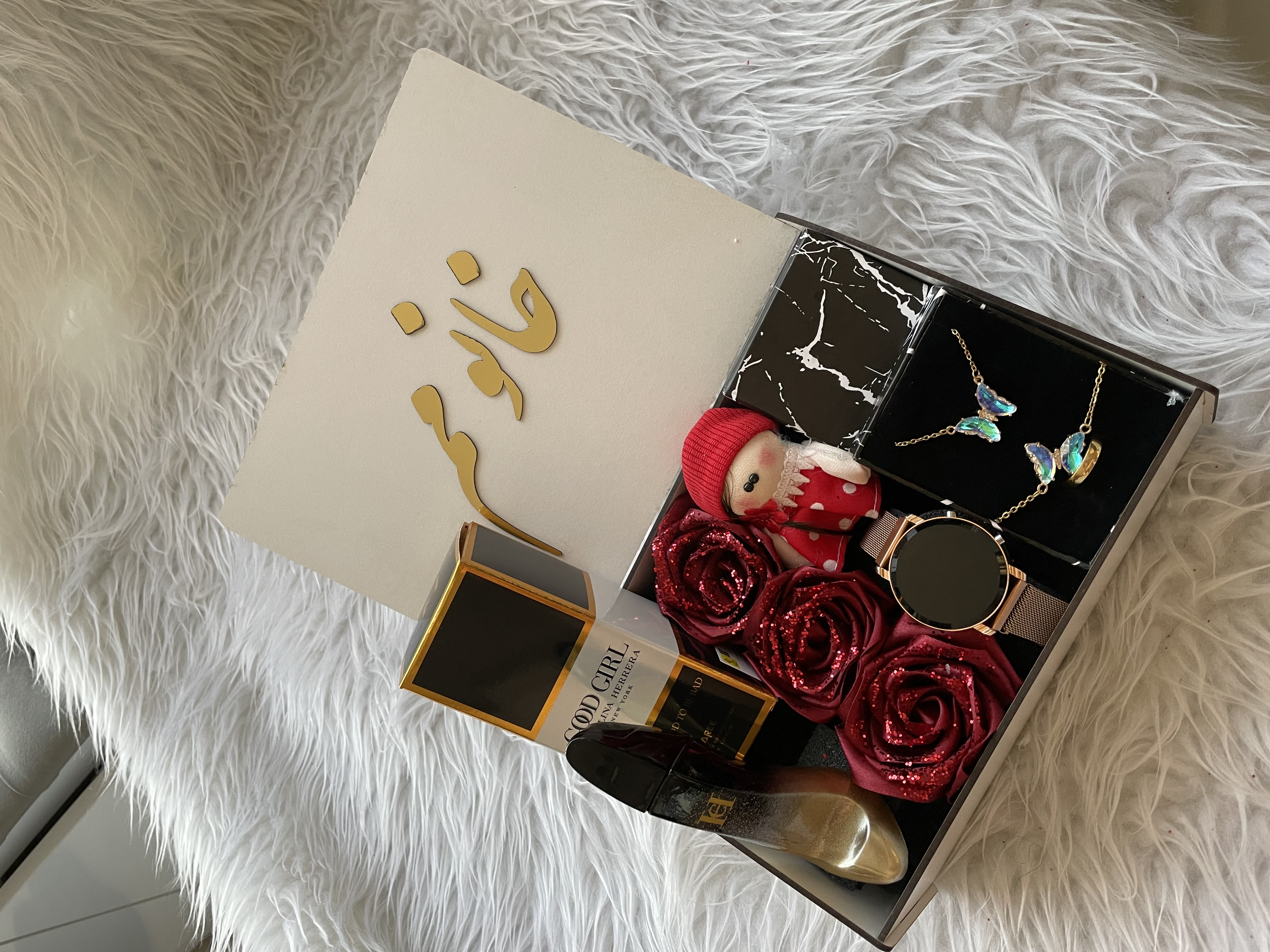 (ارسال رایگان) باکس هدیه زنانه و دخترانه شیک و خاص/کادو/ولنتاین/باکس چوبی با متن انتخابی