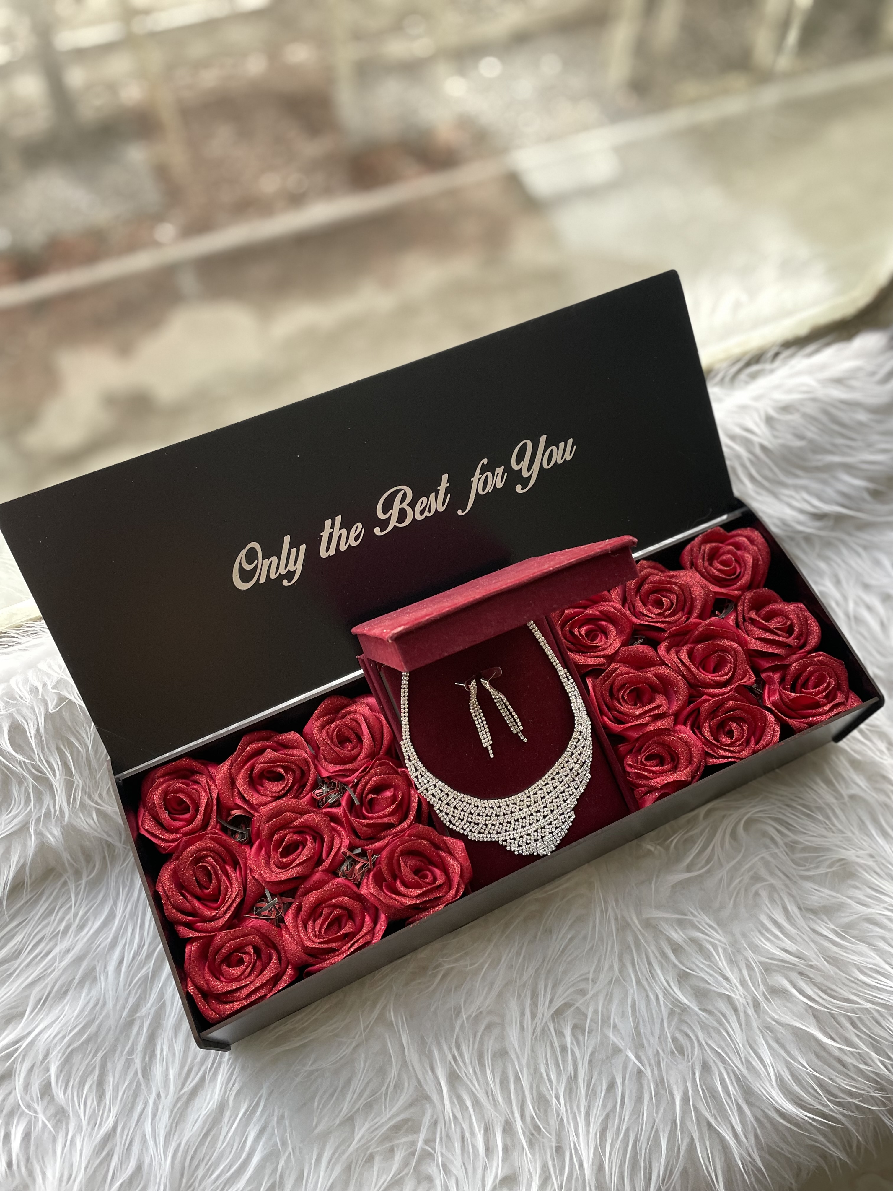 (ارسال رایگان)باکس گل و سرویس جواهری مدل لاکچری ۲ رز ربانی ماندگار هدیهای شیک ویژه روز زن و روز مادر