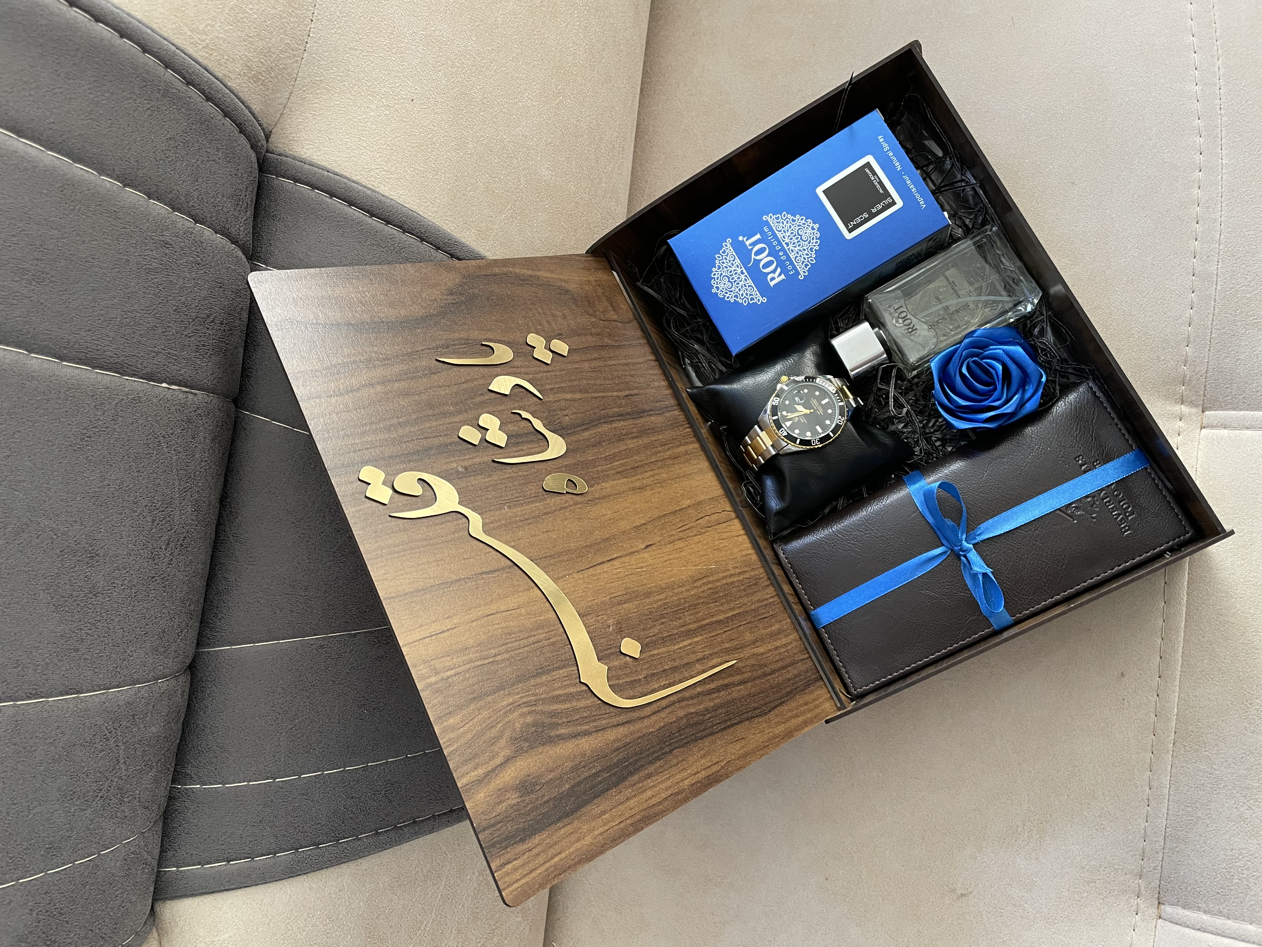 باکس هدیه لاکچری مردانه شیک روز مرد تولد کادو ساعت ۱۲ ارسال رایگان